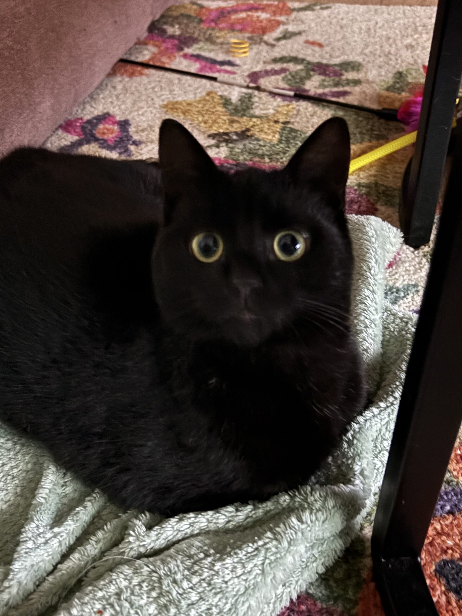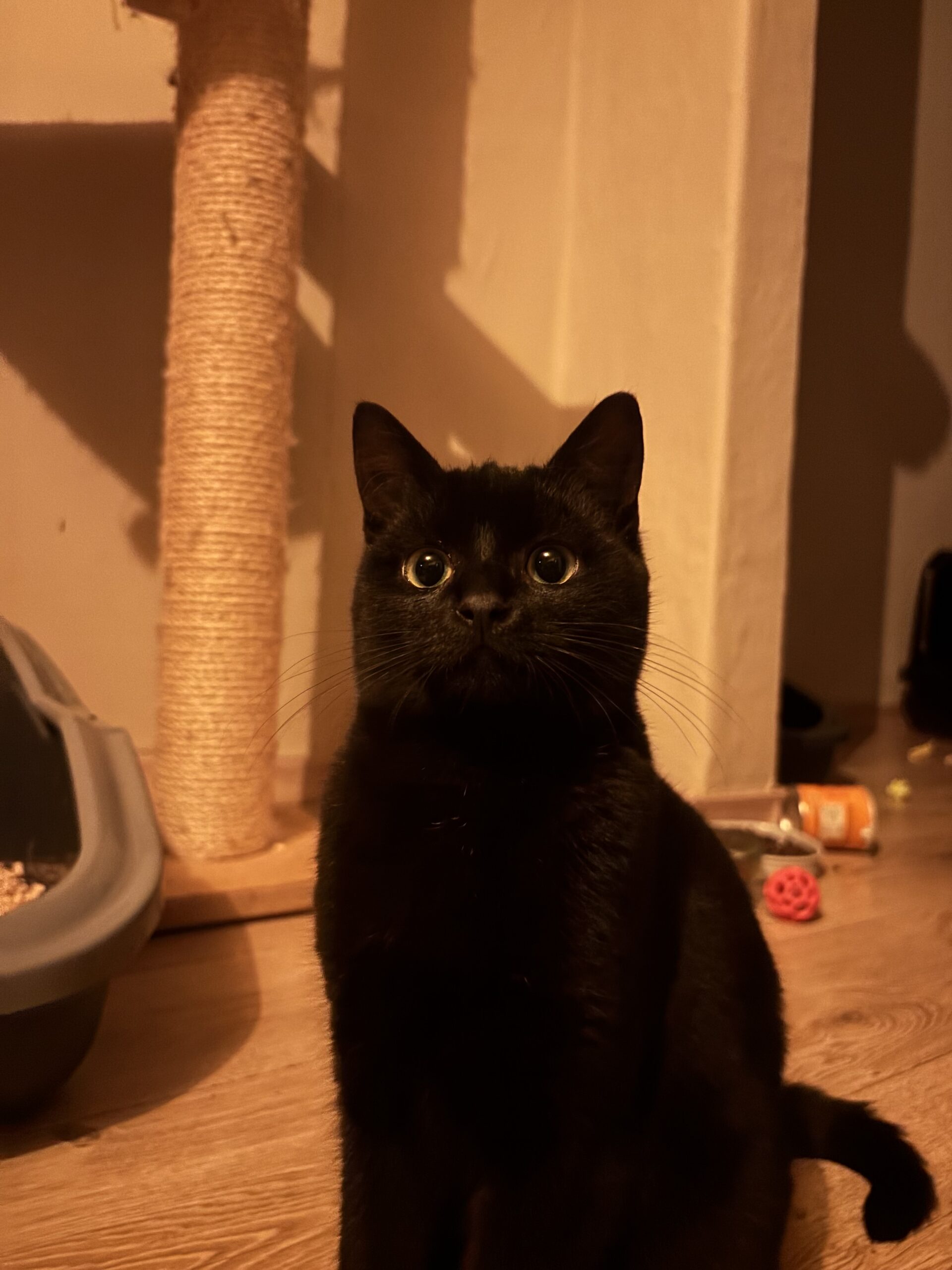 Archie hier, ik wil graag ook nog even iets over mezelf vertellen. Ik heb namelijk een bijnaam, Toothless. Als je de film Hoe tem je een draak weleens hebt gezien dan snap je waarschijnlijk waarom. Ik ben namelijk net zo’n zwarte draak met hele grote ogen. Volgens de dierenarts zou ik iets ouder zijn dan Alvin en zo gedraag ik me ook. Ik durfde namelijk als eerste snoepjes te eten uit pleegmama’s hand en ik kan ook heel hard knorren als ze me aait. Optillen vind ik nog wel een beetje spannend maar laat ik wel eventjes toe. Net als Toothless uit de film lijk ik heel stoer maar doe ik je geen vlieg kwaad hoor. Ik kroel met alle andere katten die dat willen en geef heel veel kopjes.