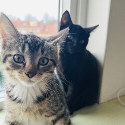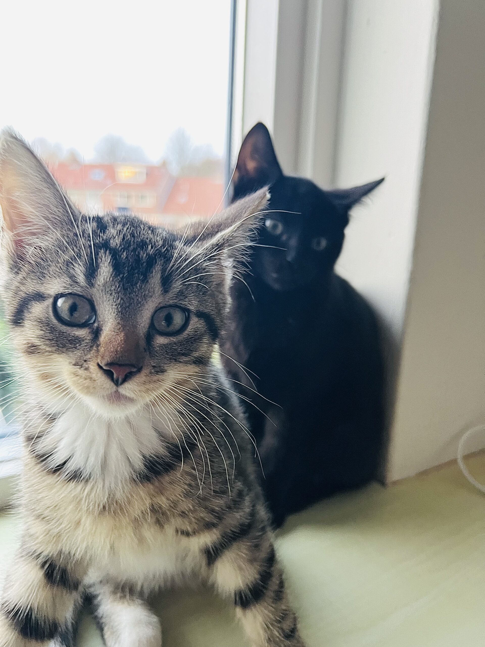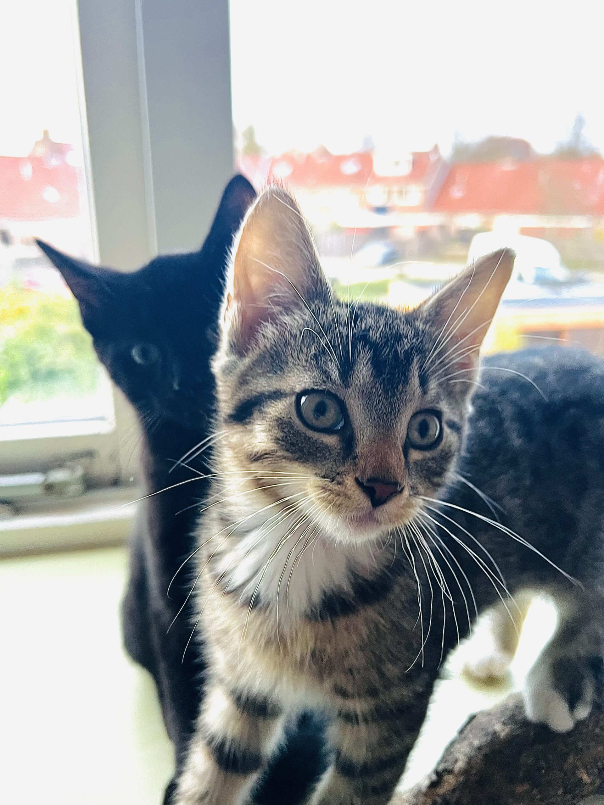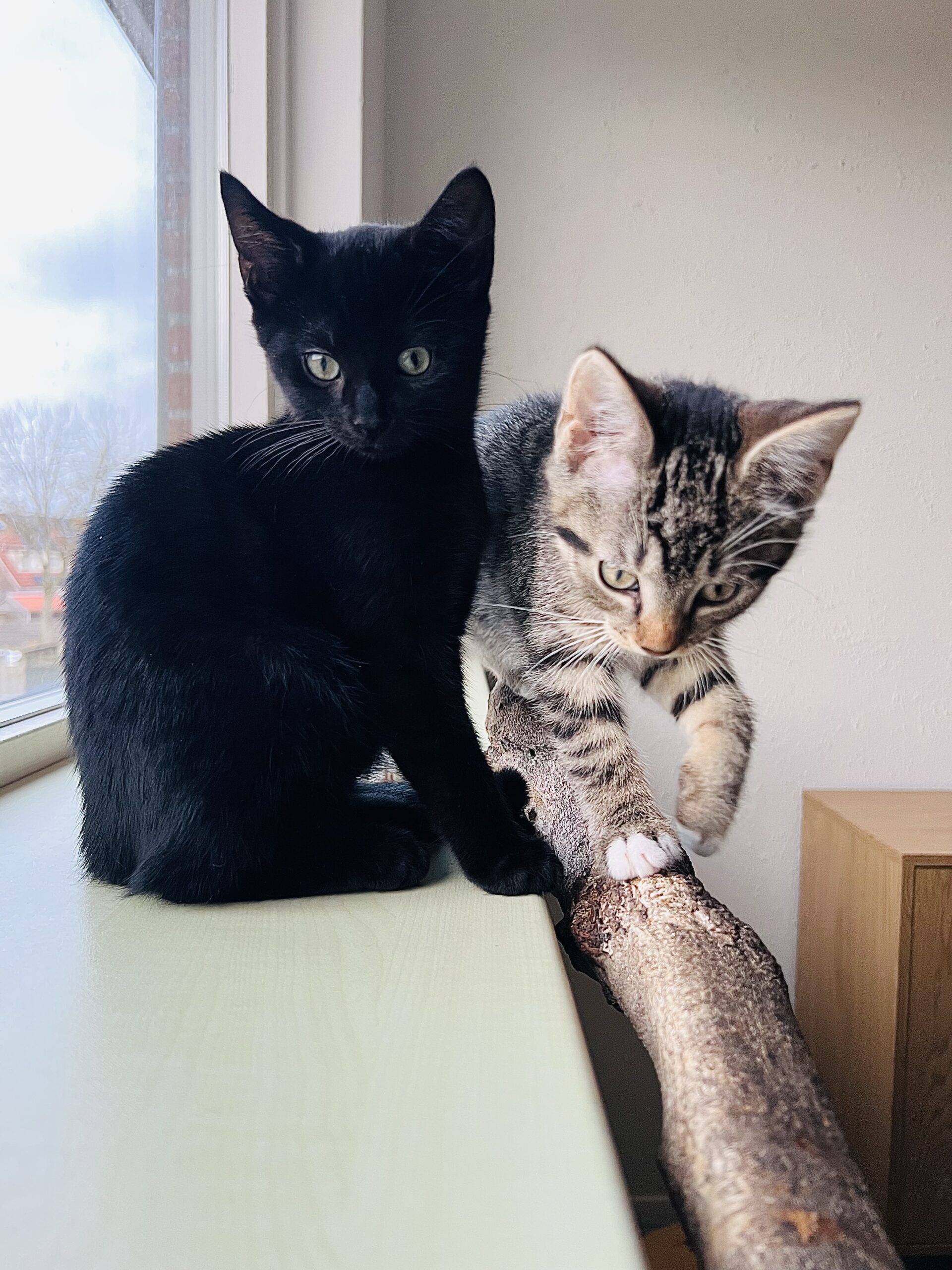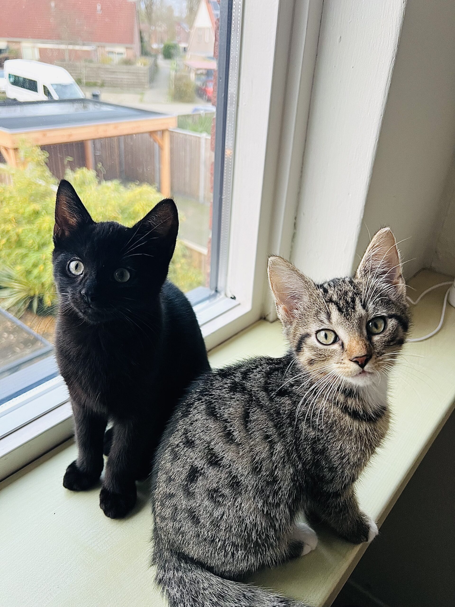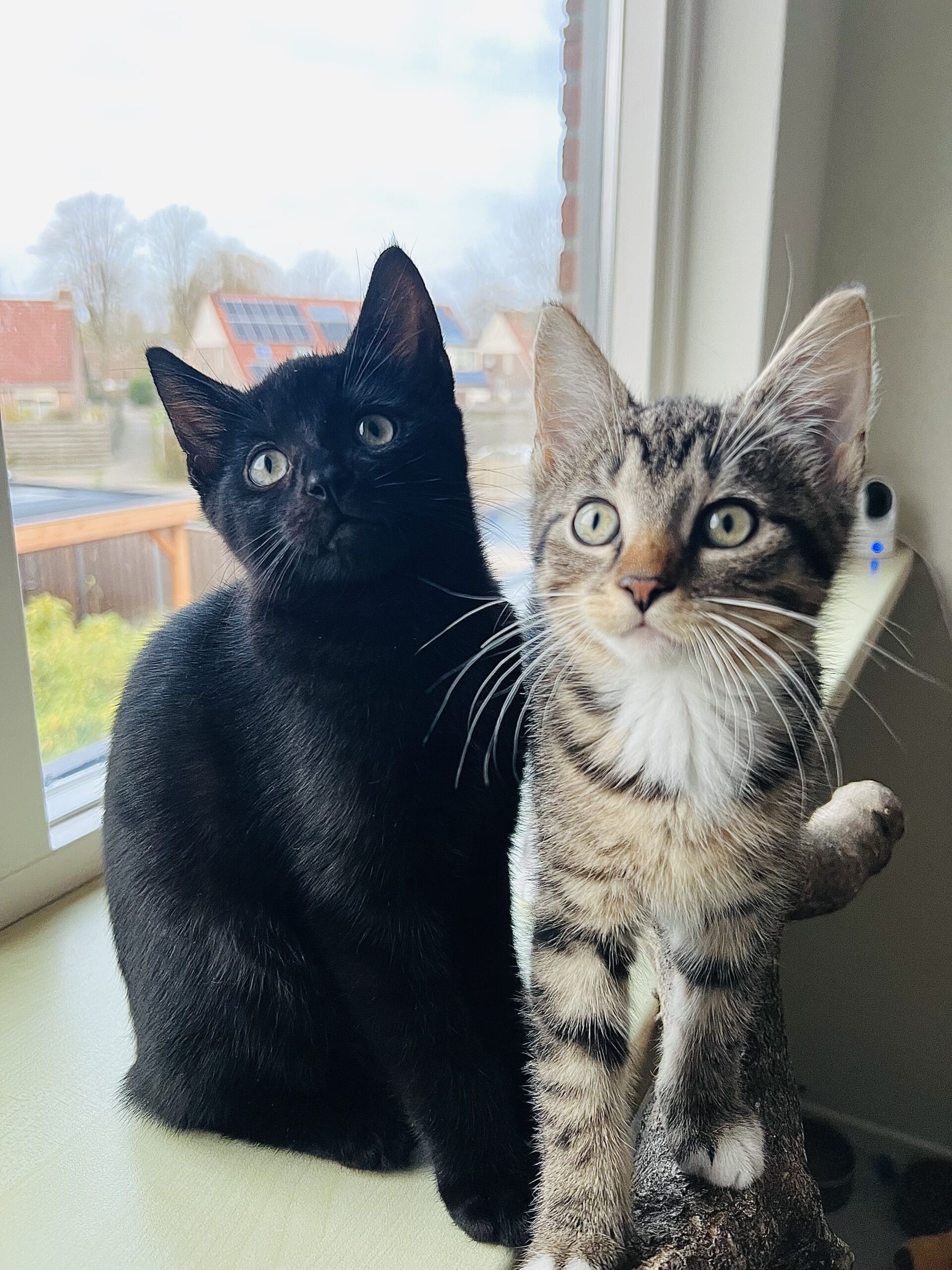 Samen vormen ze een geweldig team: ze rennen, rollen, dutten in de zon (samen, maar ook we apart) en ontdekken de wereld met kittenachtige nieuwsgierigheid.