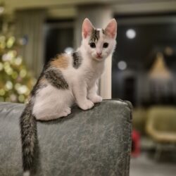 Libra is een lief nieuwsgierig poesje. Ze is altijd in voor lekkere hapjes en spelen.