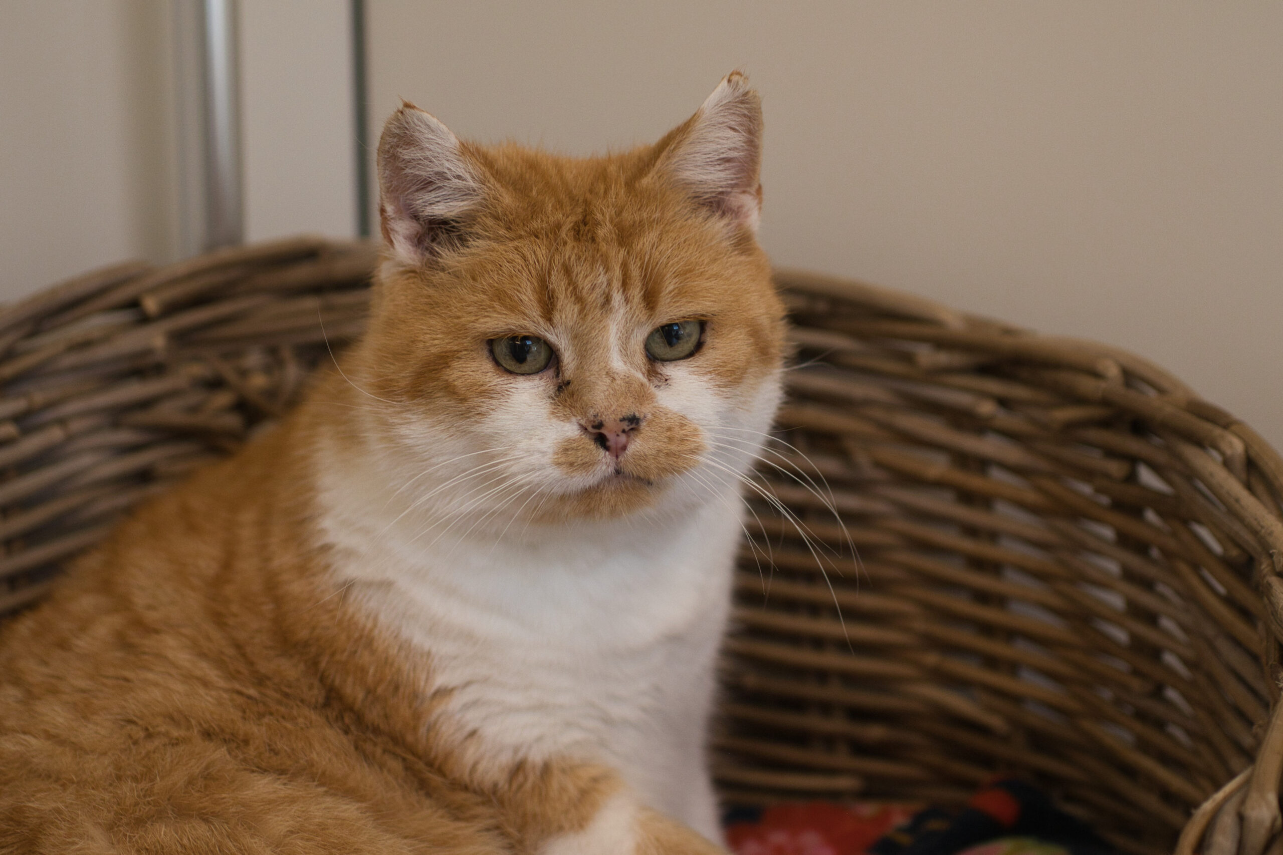 Eén van twee katers was zichtbaar op leeftijd en had last van zijn oor. Hij hield zijn kop vaak scheef en krabde veel aan zijn oor. Omdat de sfeer bij het bedrijf verre van aangenaam was voor de katten besloot onze kennis ons te benaderen. Zeker het verhaal van de oudere kater deed ons besluiten het duo op te nemen. Ze werden met behulp van een vangkooi gevangen en verhuisden vervolgens naar Drachtstercompagnie.