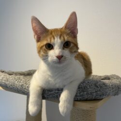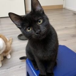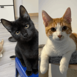 We houden namelijk heel erg van knuffelen en we beginnen al te spinnen als we onze gastmensen zien aankomen. Oppakken en op schoot zitten is niet helemaal onze hobby, daar hebben we het namelijk altijd veel te druk voor! Er is ook zoveel te doen! Met elkaar spelen, achter speeltjes aanrennen, lekker geaaid worden of gewoon even uit het raam kijken wat er buiten allemaal gebeurt. We hebben een tijdje medicijnen gehad bij ons gastgezin, maar nu zijn we weer helemaal beter!