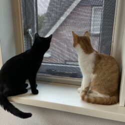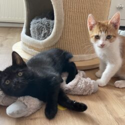 We zijn al gewend aan andere katten, honden hebben we nog niet leren kennen. Bij onze gastmensen kunnen we naar buiten in een grote ren, dat vinden we leuk. Het zou daarom fijn zijn als ons nieuwe huis een kat-proof afgeschermde tuin of veilige buitenomgeving heeft. Maar we vinden het ook prima om binnenkatten te zijn.